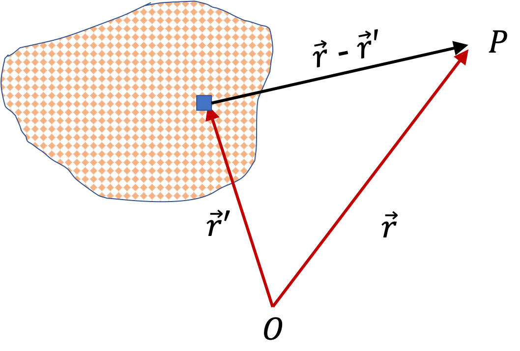 We start with identifying a representative cell on the line. This is shown in the figure as an infinitesimal elment at coordinate \(y\text{.}\) The charge in the cell is \(dq = \lambda\,dy\text{.}\) From the figure, it is clear that the electric potential of this charge will be